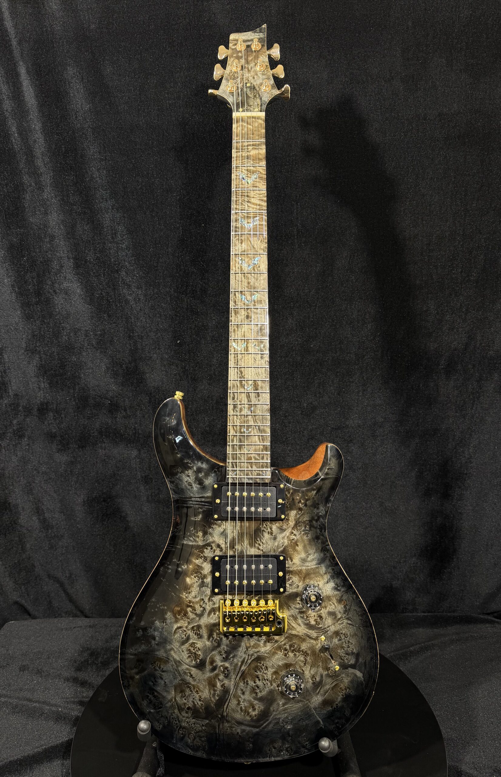 – Fingerboard: Golden Camphor Burls